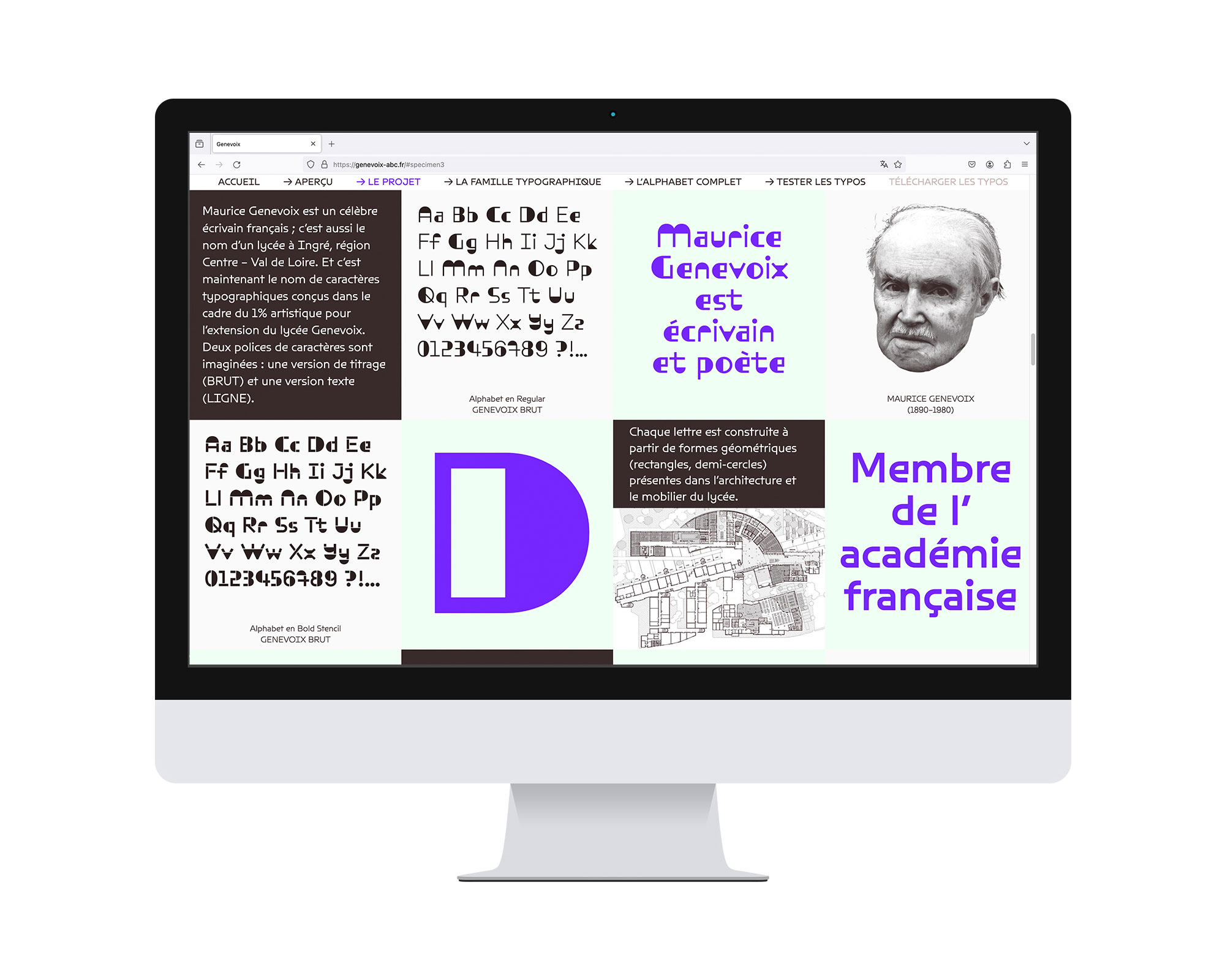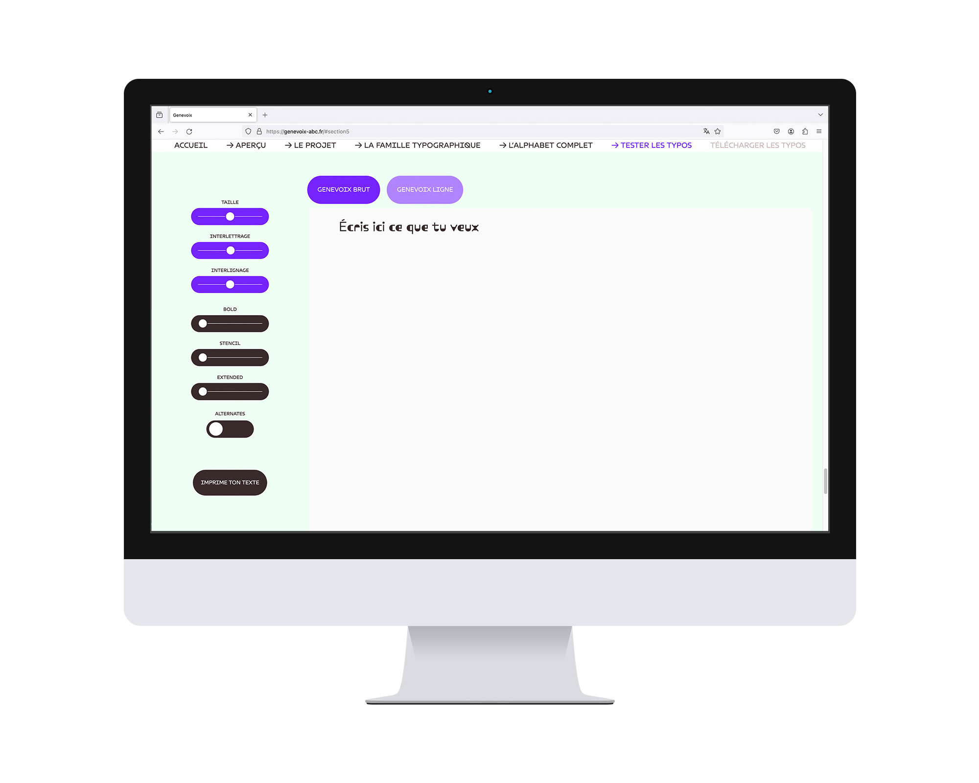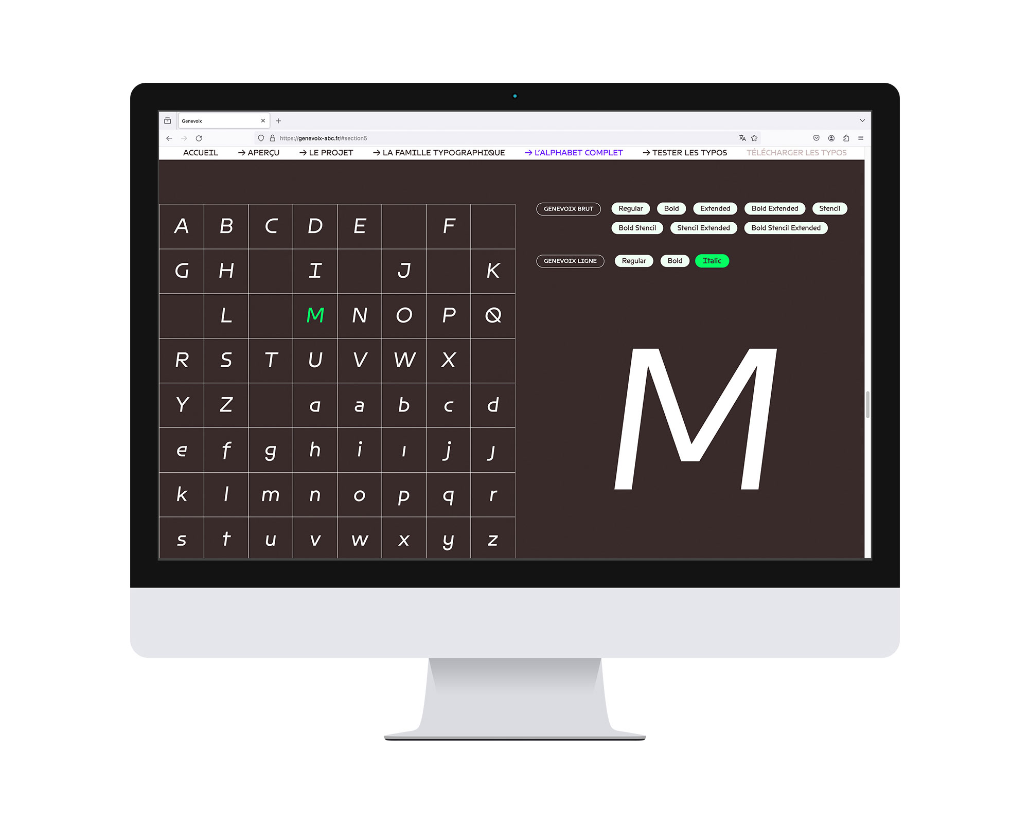 Un site Internet est conçu pour mieux comprendre le projet. Il permet d’avoir un aperçu des caractères typographiques produits, de les tester et de les télécharger librement.